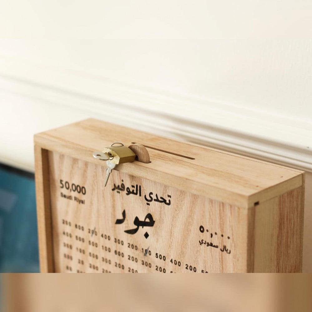 حصالة نقود خشبية مصنوعة من الخشب الفاخر. تتميز بتصميم بسيط وأنيق يضيف لمسة رائعة لديكورك. يمكن نقش.اسمك بشكل فخم على الحصالة. تمنحك هذه الحصالة عادة الادخار وتساعدك في الازمات حيث تكون وسيلة ممتازة لتخزين المال. يمكنك الاعتماد عليها لتحقيق أهدافك المالية والتوفير لمستقبل أفضل.