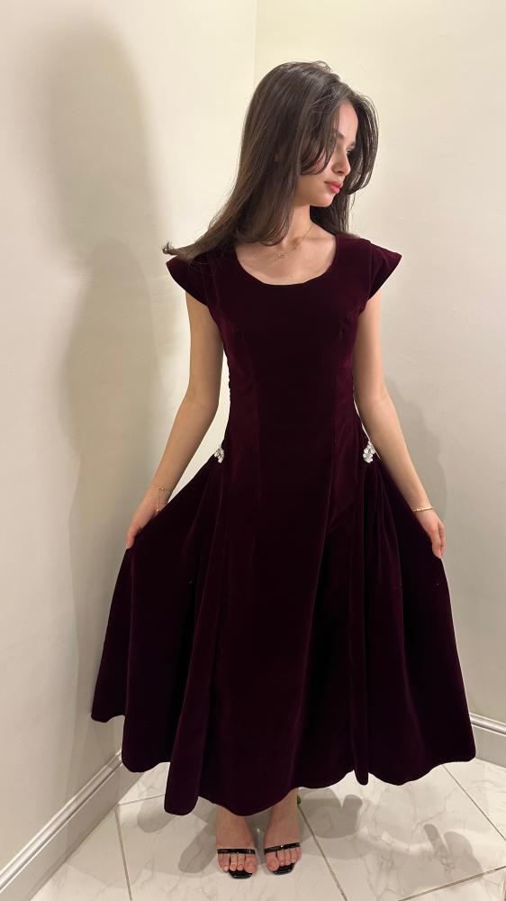 الفستان مصنوع من جوخ فاخر بملمس مخملي ناعم يمنحك حضوراً راقياً ولمسة فاخرة تعكس الأناقة الشتوية بكل تفاصيلها.
