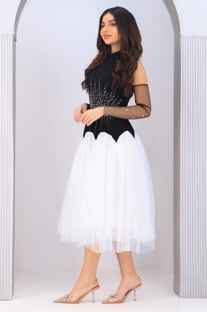 فستان سهره بتصميم اكمام منفصله لون اسود