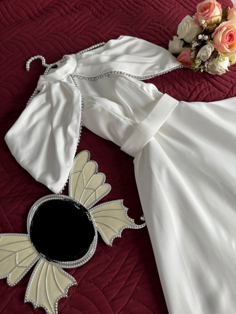 فستان سهرة ناعم مع خرز بصدر