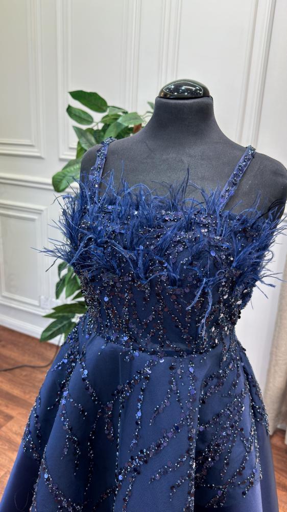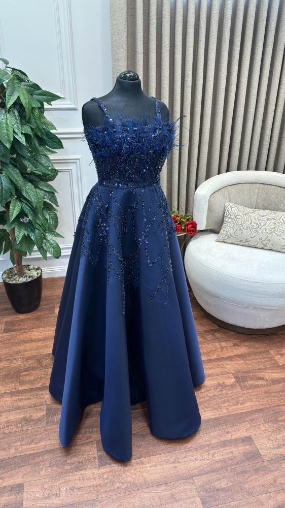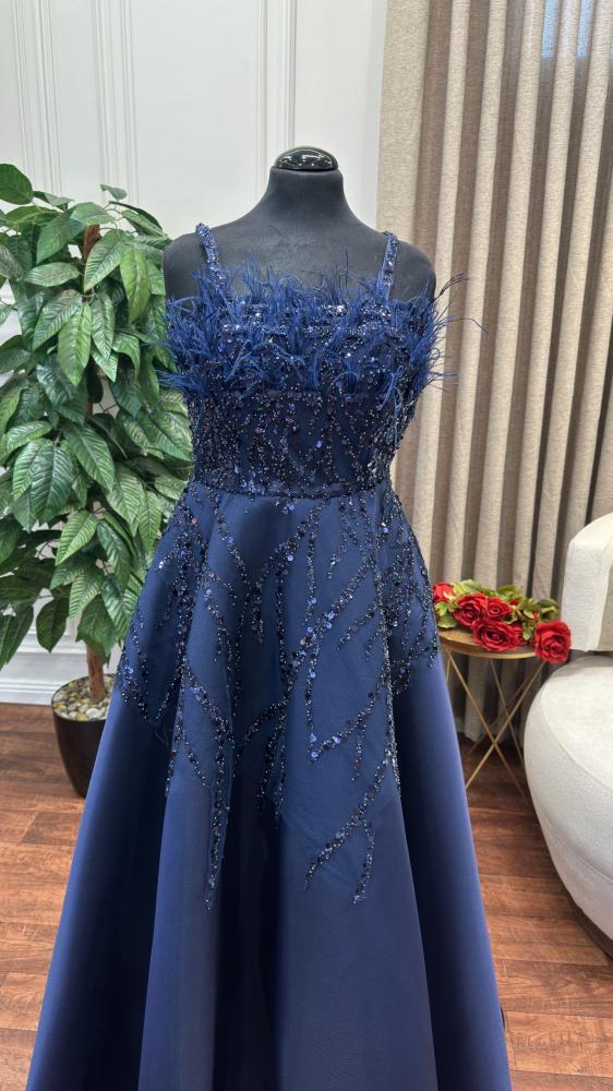 فستان أخر العنقود بتطريز خرز وصدر ريش