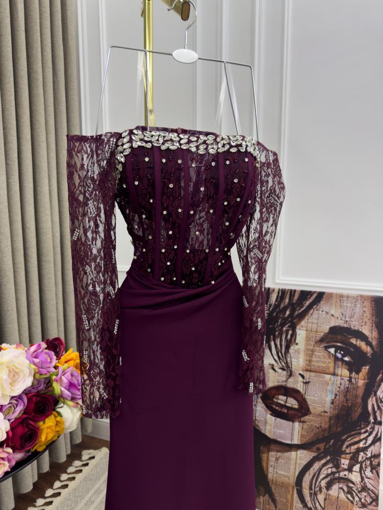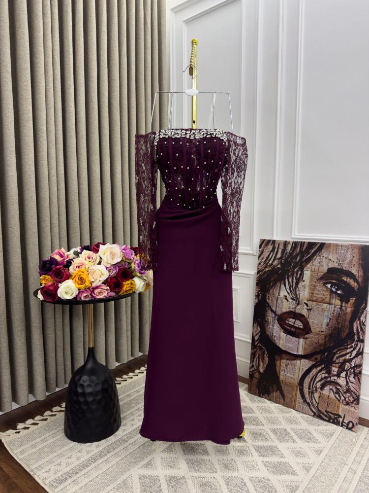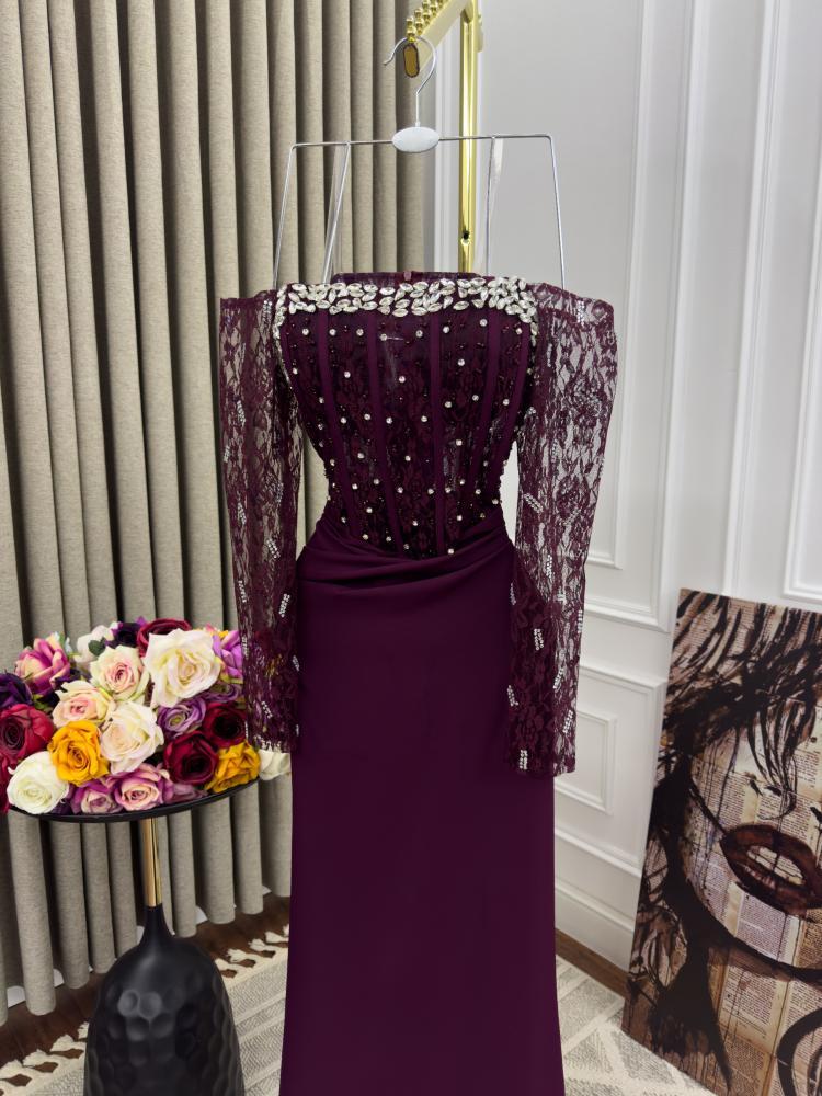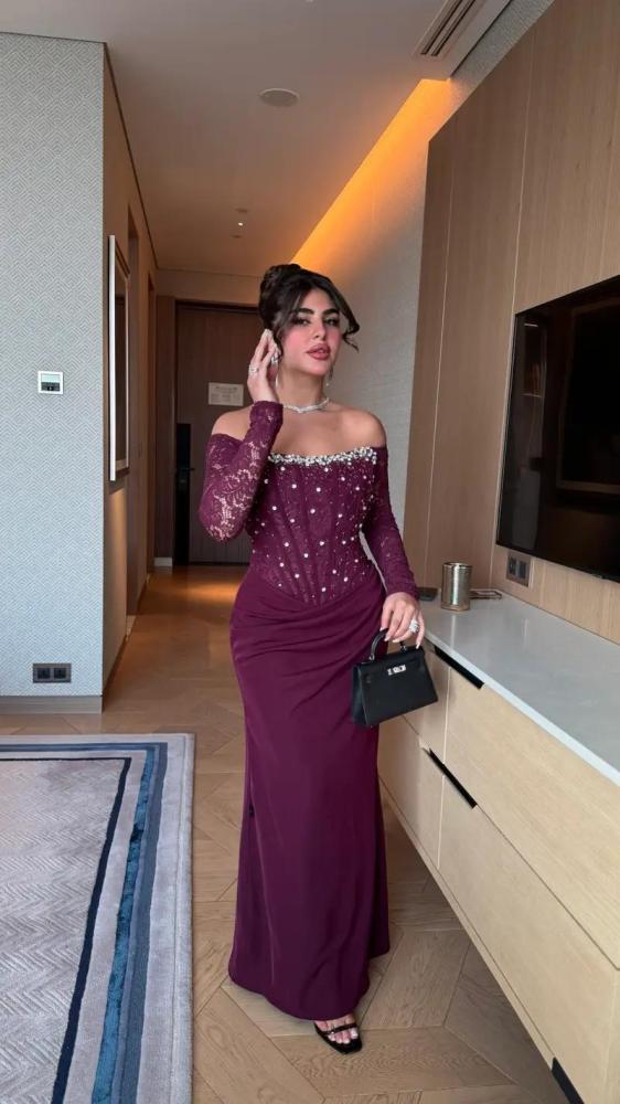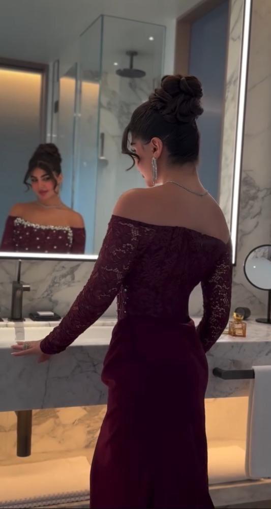- الخامة :باربي _تطريز يدوي راقي _أكمام دانتيل