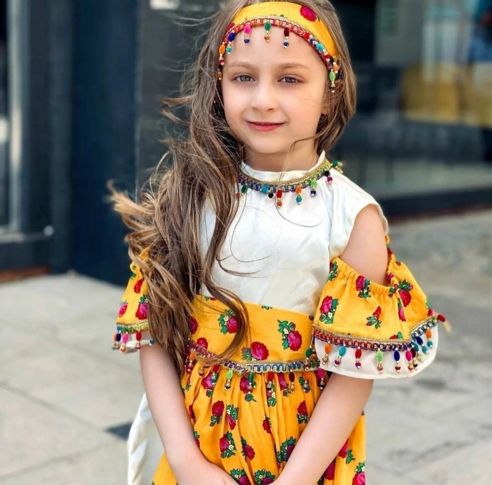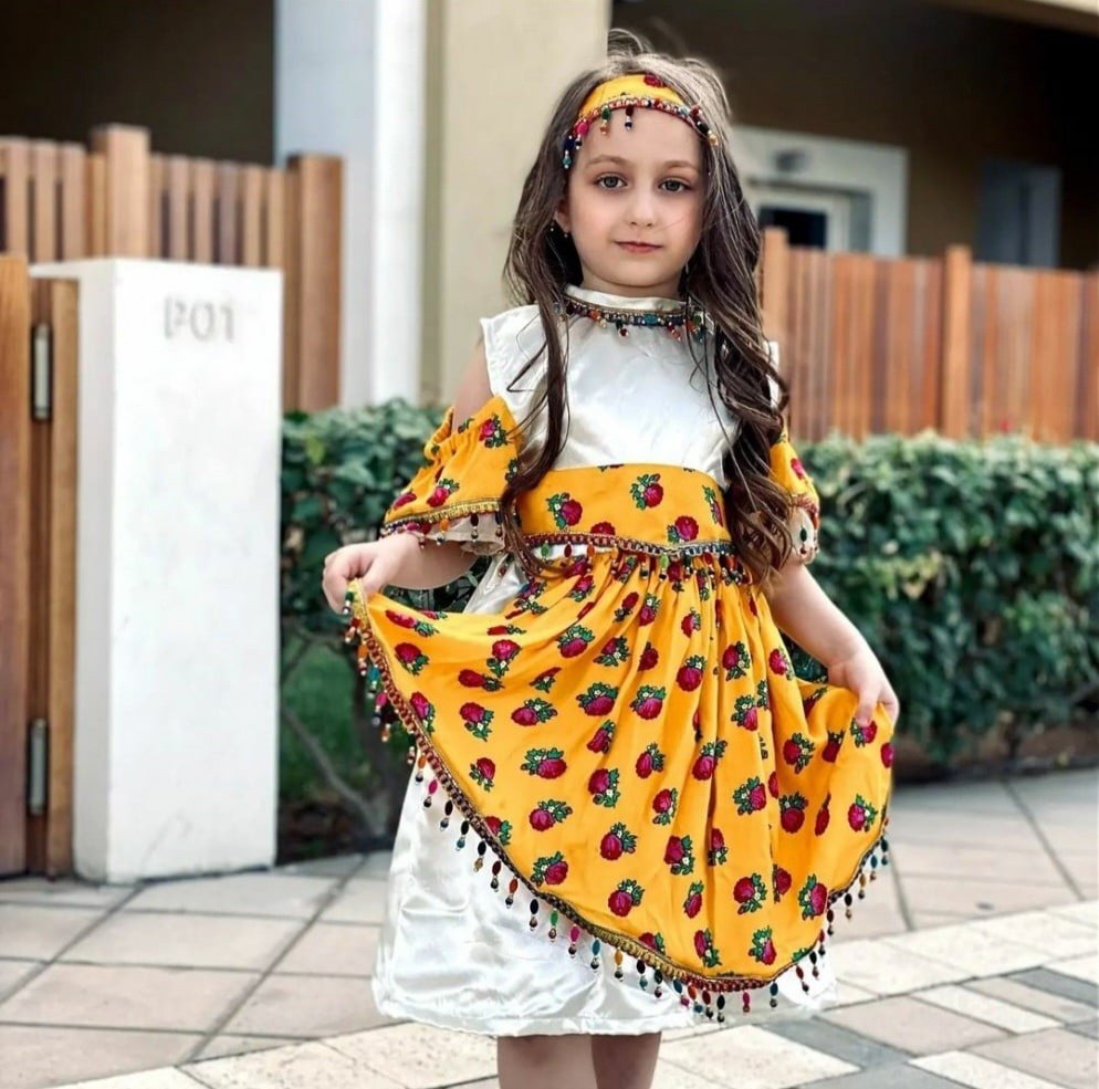 الفستان عباره عن موديل بشكل حضري. بقماش الشالكي الشعبي التراثي