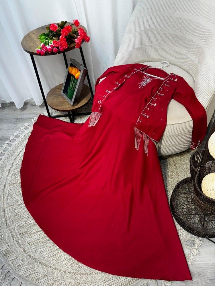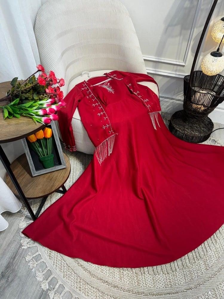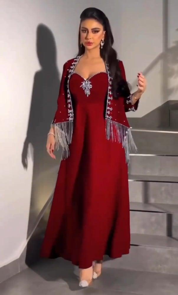 فستان راقي ومميز ثلاث الوان مختلفه احمر - زيتي - ازرق نيلي