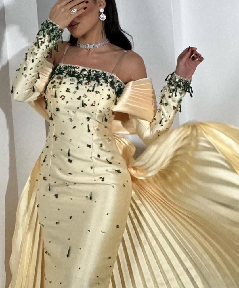 - نصمم الفساتين بتفاصيل دقيقة تزيد جاذبيتك.