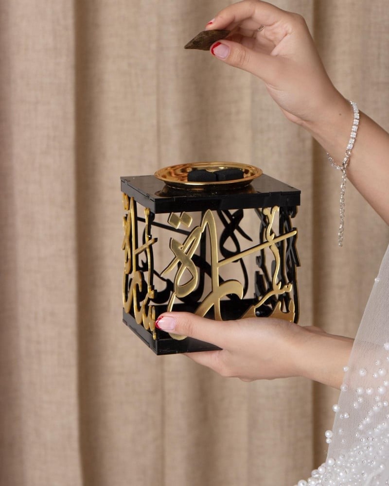 مبخرة بالاسم شكل مربعمبخرة الفخامة تحمل اسمك مصمم بيد أمهر الخطاطين.المقاسالطول : 16 سمالعرض: 16 سمالارتفاع : 13.5 سم