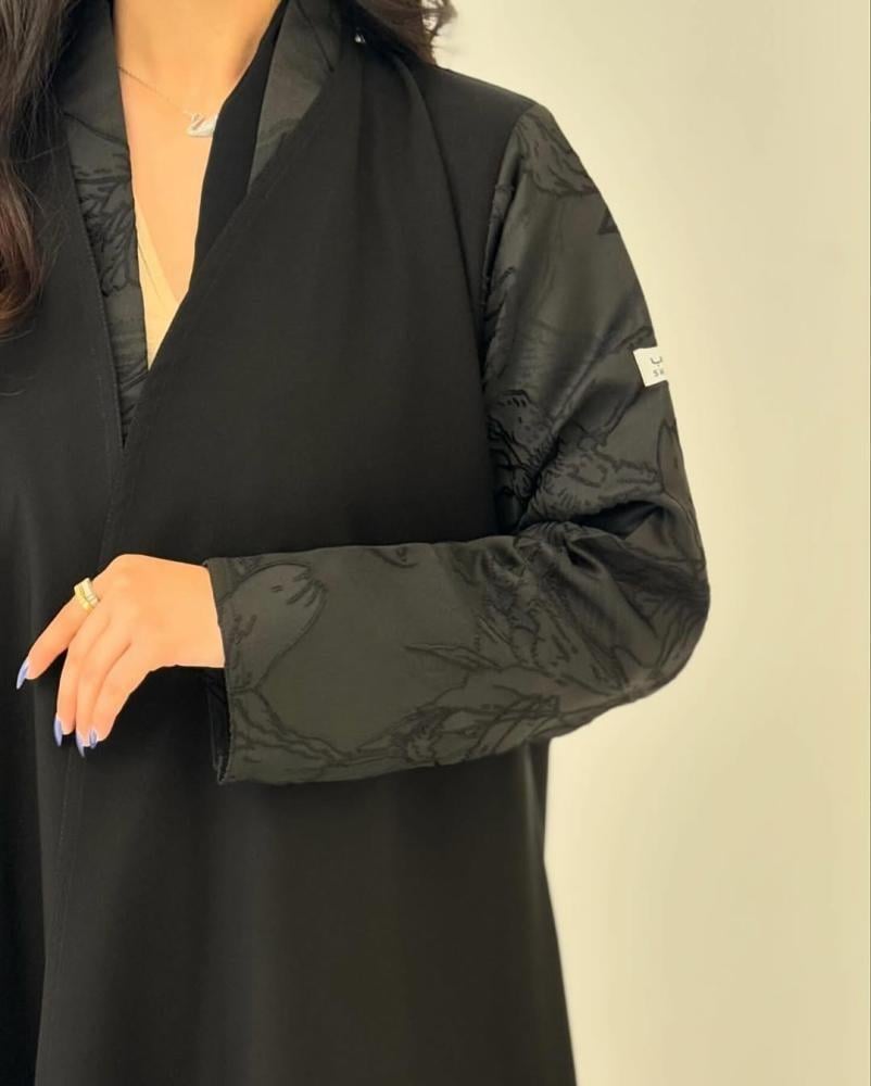 عبايه كتان مطبوع مشجر اكمام ضيقه