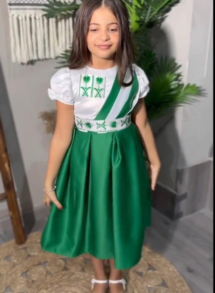 فستان اليوم الوطني اخضر مع ابيض