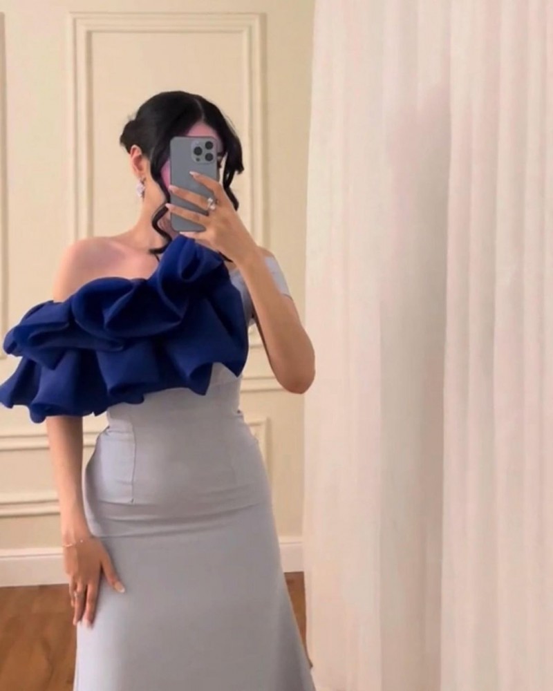 فستان ازرق سماوي من كشكش