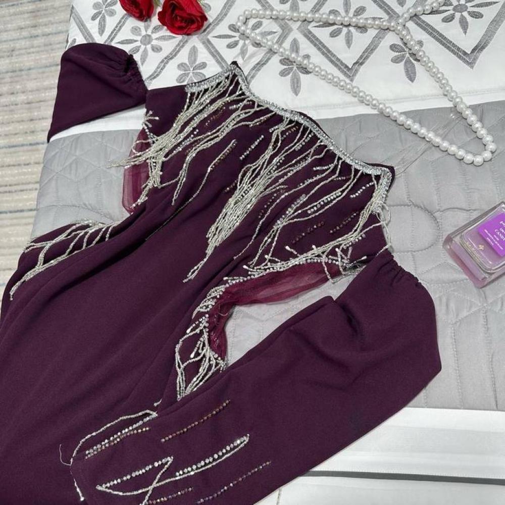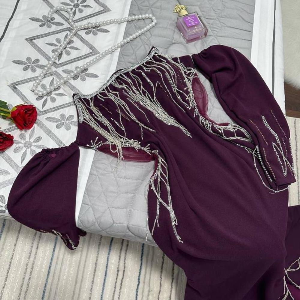 فستان سهره هدب مع تطريز انيق