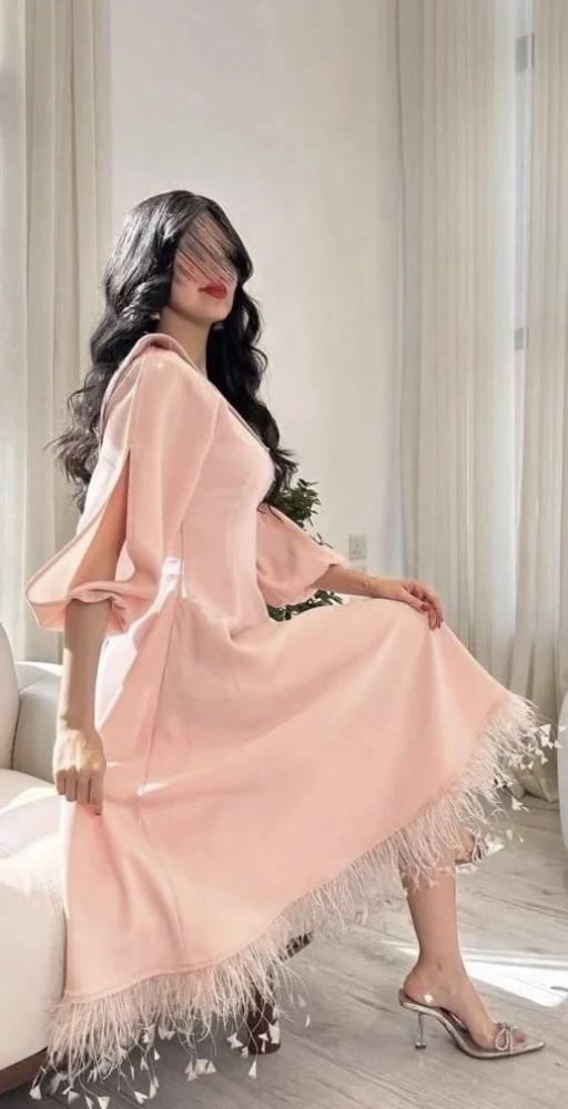 فستان العيد مع ريش من تحت -رنا فاشن