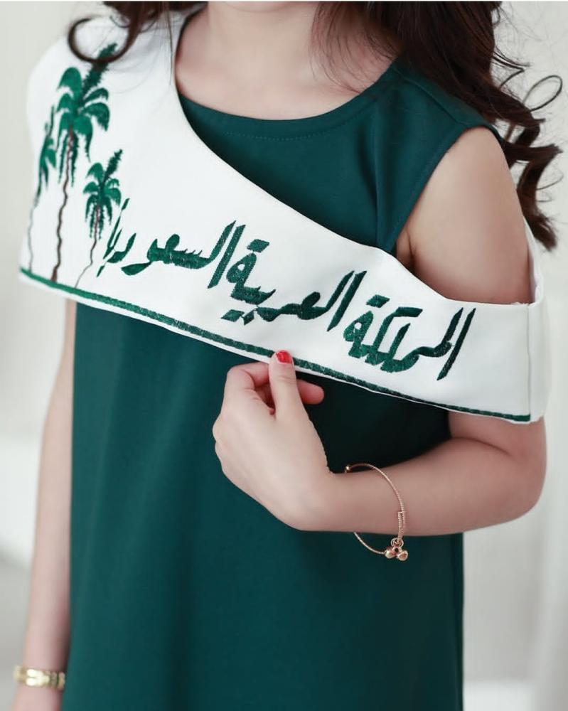 تصاميم متنوعة مستوحاة من التراث والهوية السعودية، بألوان مستلهمة من العلم السعودي (الأخضر والأبيض) وتفاصيل تعبّر عن الفخر والانتماء.