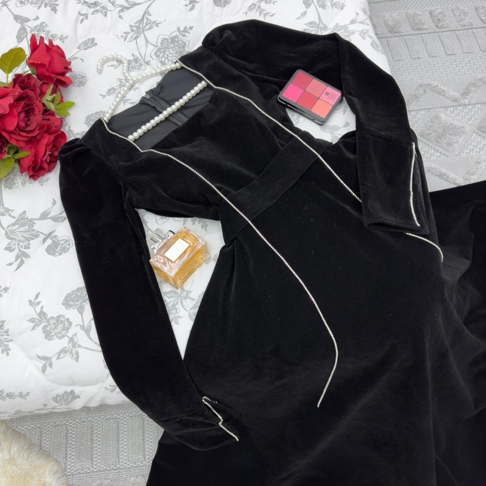 فستان مخمل طويل احمر