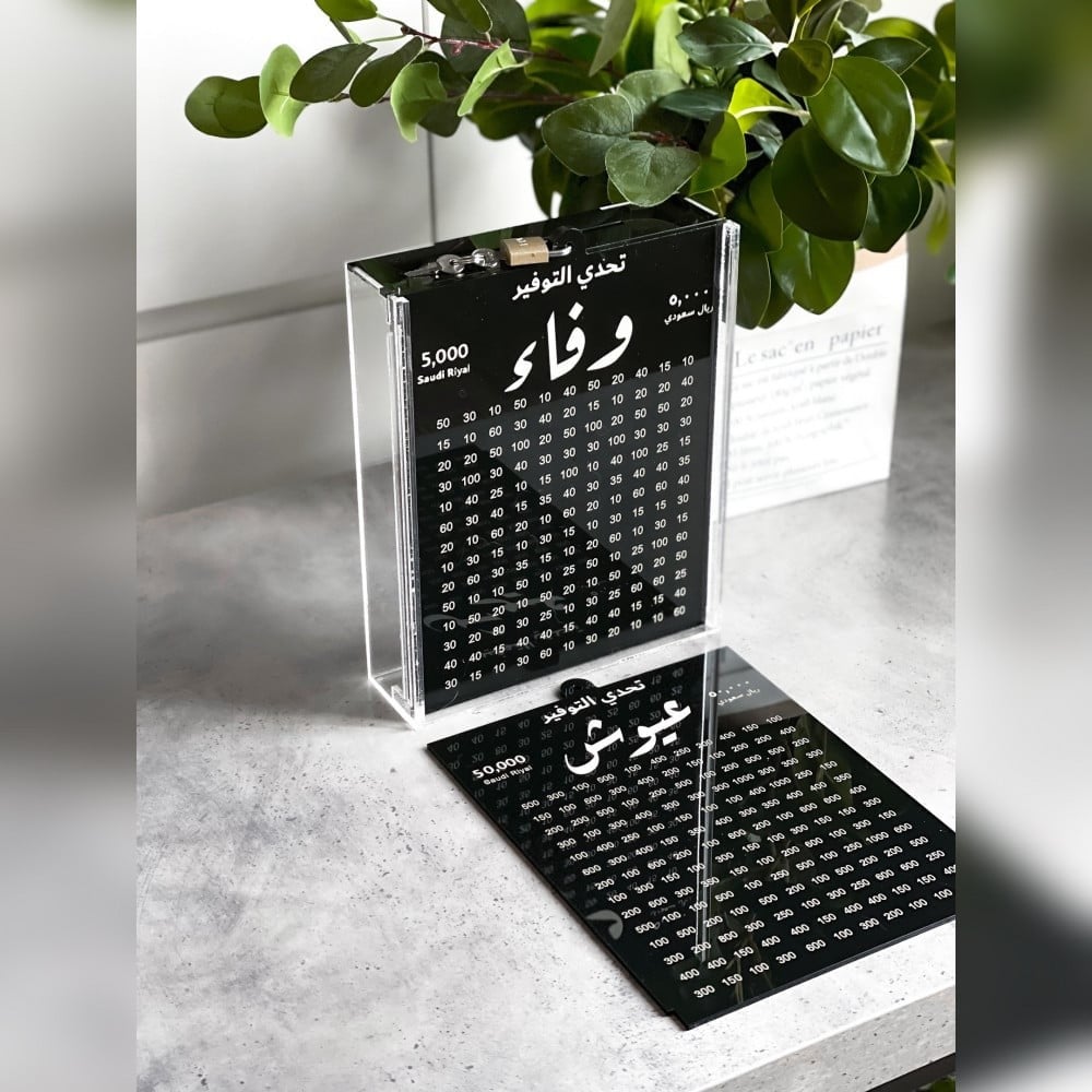حصاله شفافه 50 ألف + 100 ألف مع قفل ومفتاح هي حصالة فاخرة تم تصميمها خصيصًا لتجميع مبلغ كبير من المال بطريقة رهيبة وفعالة. يتم نقش اسمك على الحصالة لتعزيز وجعلها فريدة من نوعها. تأتي الحصالة بحجم واسع يسمح بوضع كمية كبيرة من النقود فيها. يمكنك وضع المبلغ الذي ترغب في توفيره داخل الحصالة، ثم تقوم بوضع علامة على المبلغ بمفتاح قفل الحصالة المرفق. هذا يسمح لك بتعيين هدف محدد لتوفير المال والحفاظ عليه بطريقة آمنة ومنظمة.