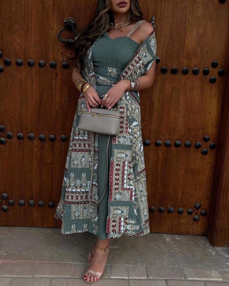 جلابيه زيتي مع نقشة فاخرة من رنا