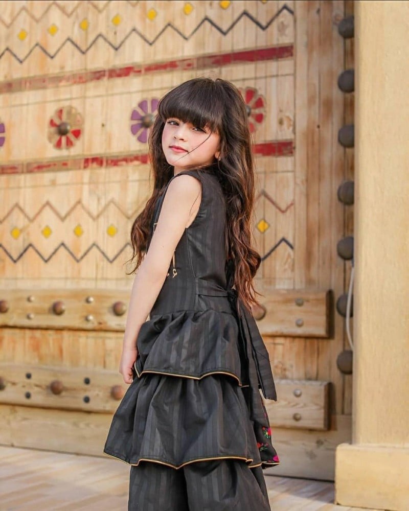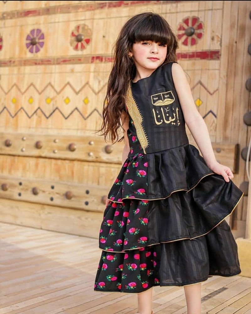 الفستان عباره عن موديل بشكل حضري. بقماش الشالكي الشعبي التراثي