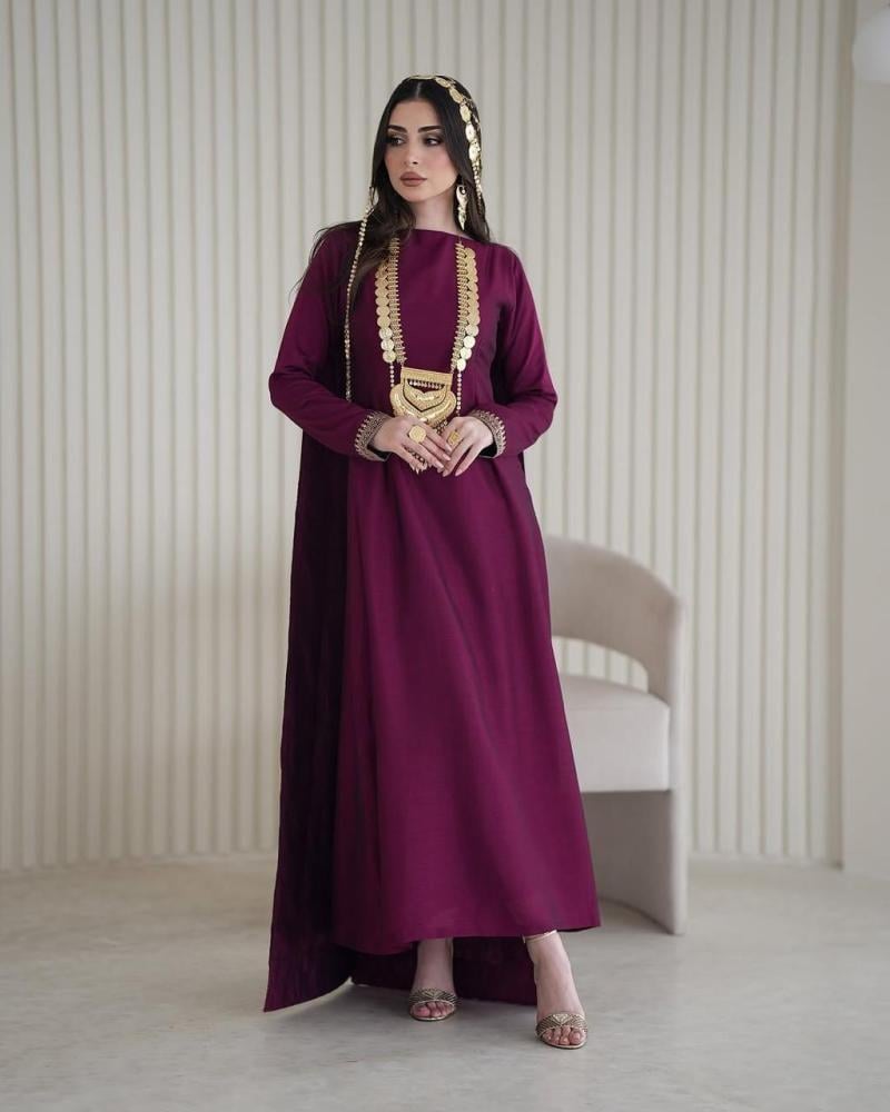 فستان عصري في تصميمها حتى تتواكب مع الأزياء العصرية والموضة الحديثة .