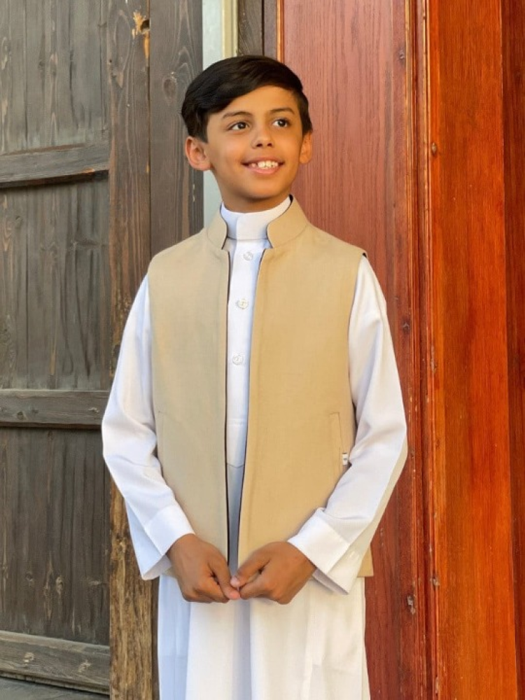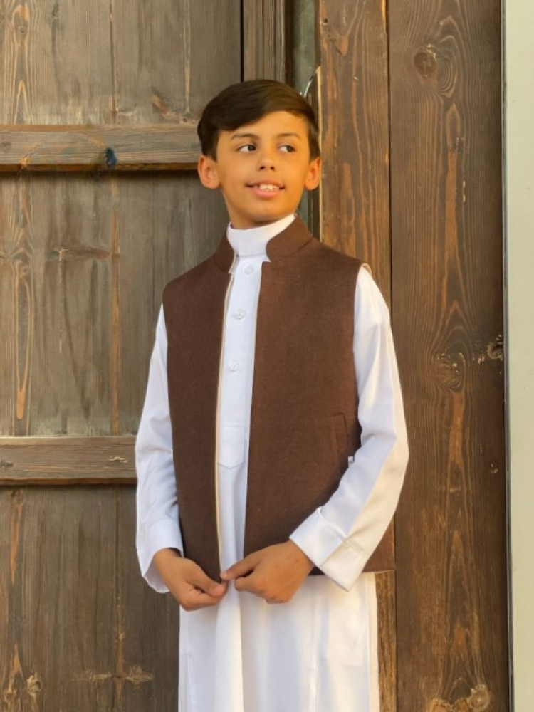 سديري جوخ دبل فيس للاطفال بني-بيج