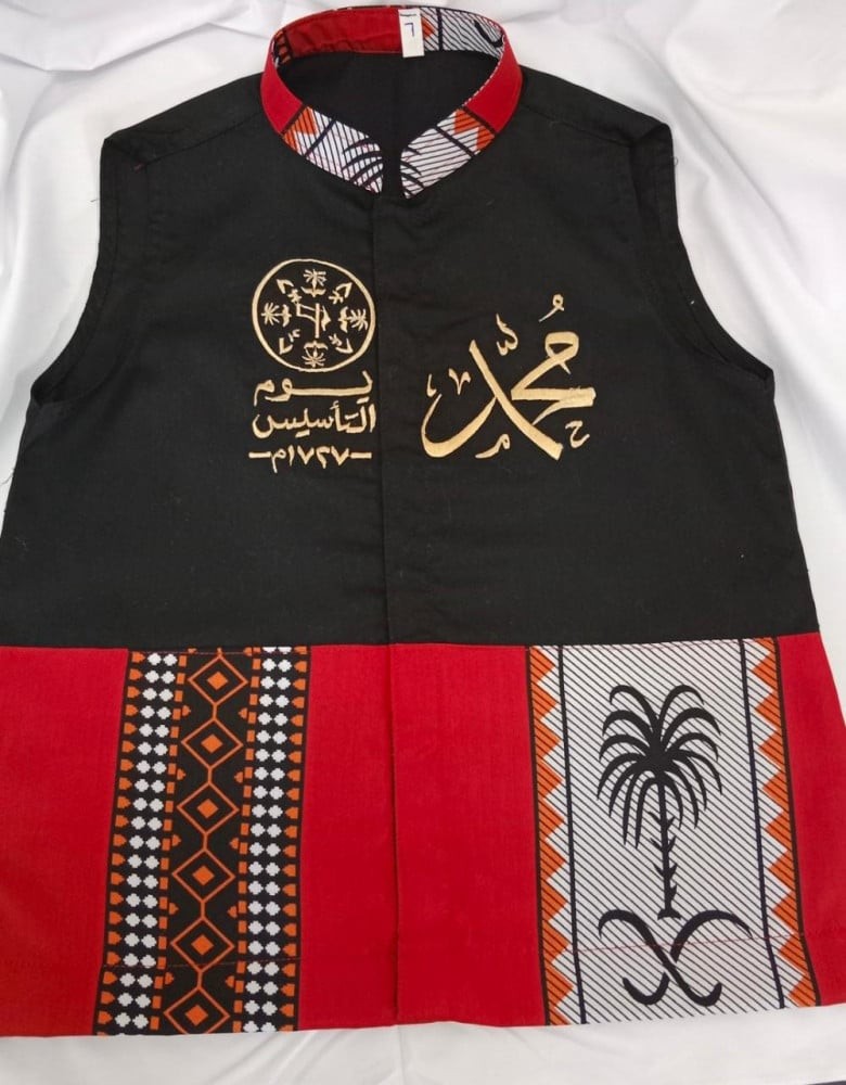 سديري يوم التأسيس ممزوج بنقشة السدوبشكله الانيقمتوفر مقاسات حسب العمرمن سنه الى12سنهمع امكانيه اضافه الاسم عليه حسب طلبك