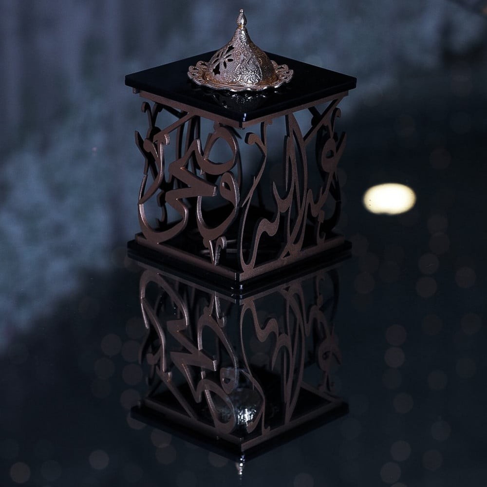 مبخرة بالاسم شكل مربعمبخرة الفخامة تحمل اسمك مصمم بيد أمهر الخطاطين.المقاسالطول : 16 سمالعرض: 16 سمالارتفاع : 13.5 سم