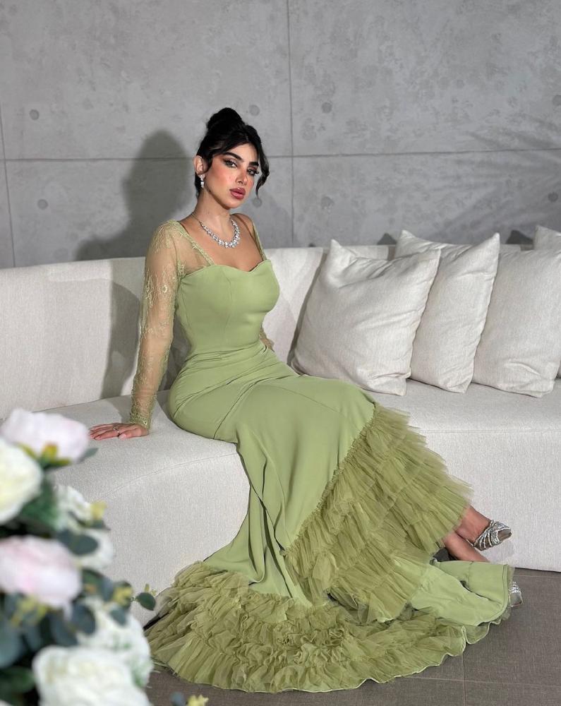 فستان باربي ودانتيل وتل المزين بالطبقات