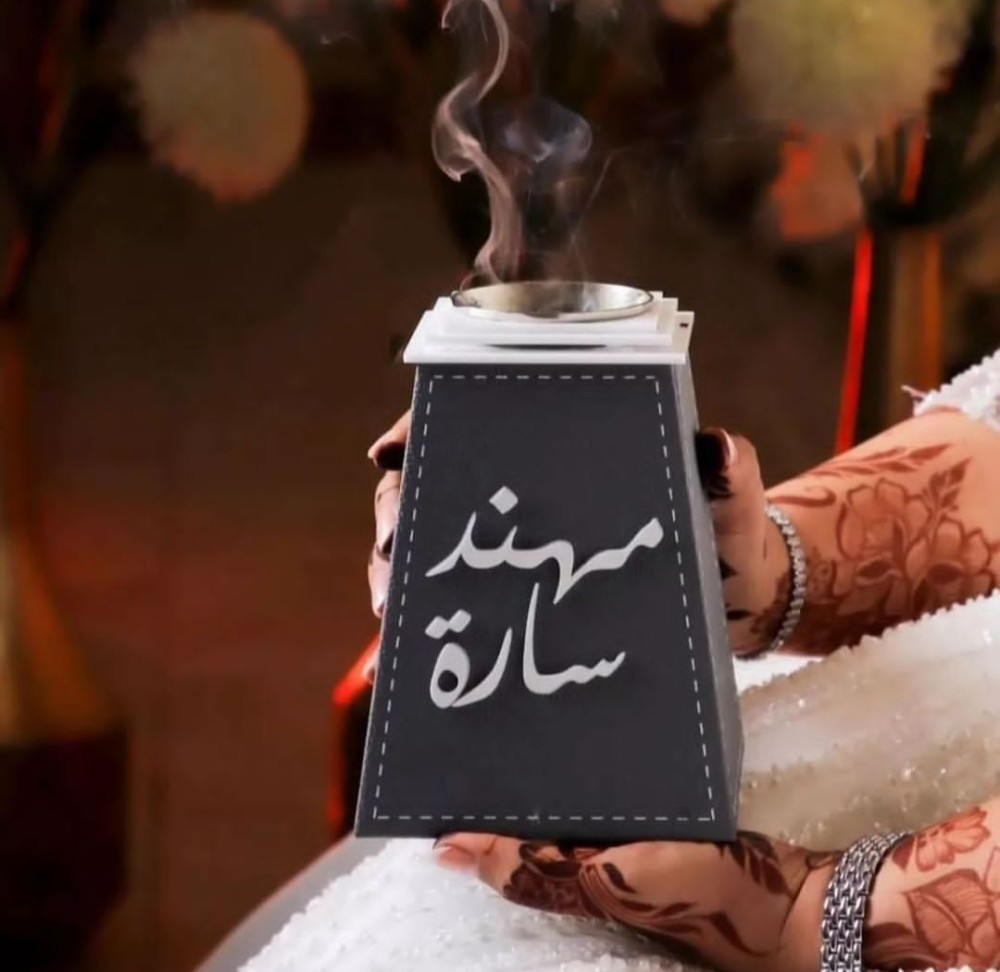 شكل مبخرة جديد وفاخر مع احرف العروسين ، اضافة تصوير مرغوبة لدى العرائس