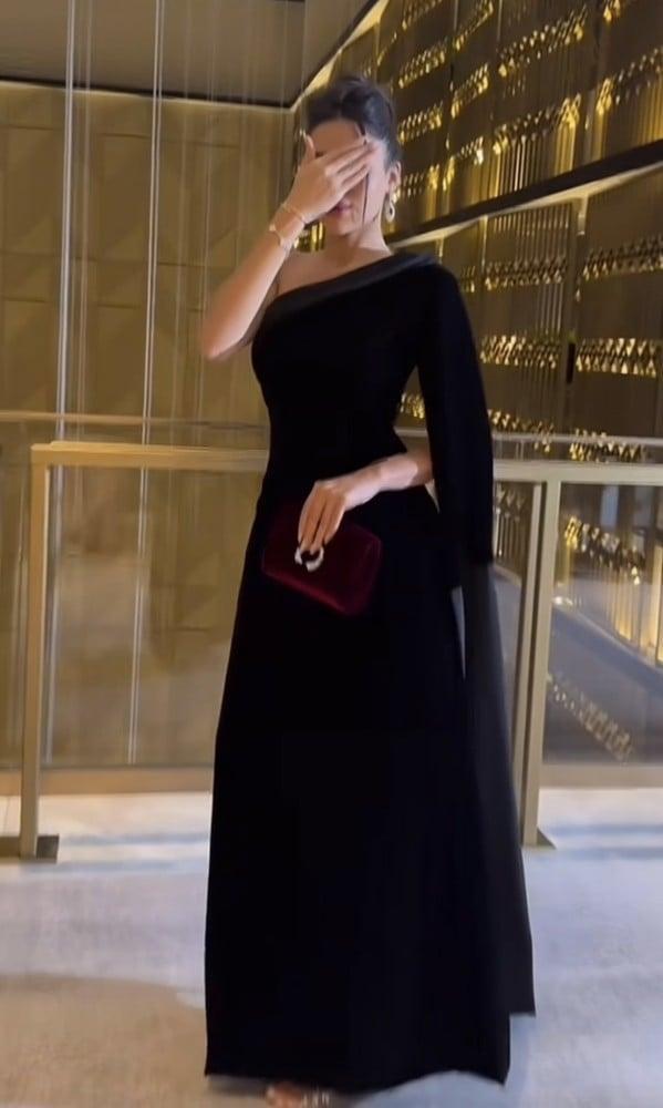 فستان عصري في تصميمها حتى تتواكب مع الأزياء العصرية والموضة الحديثة .