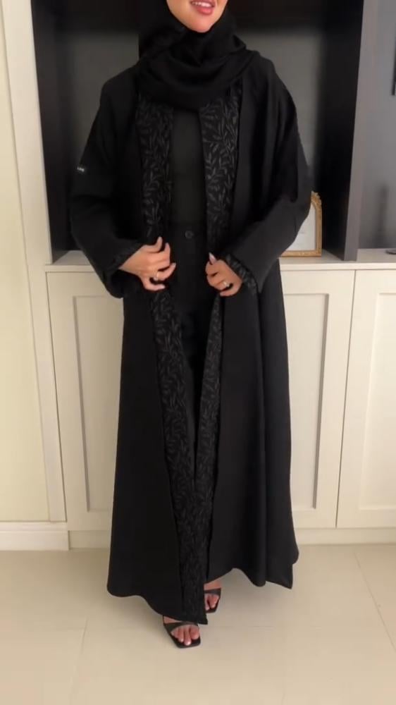- القصة: عباية بخامة كريب كتان والامام وطرف الاكمام فيكرو
