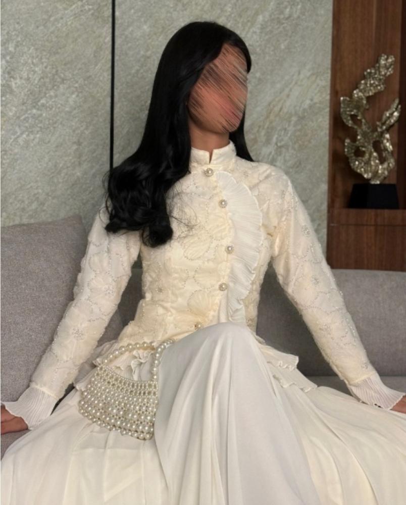 فستان عصري في تصميمها حتى تتواكب مع الأزياء العصرية والموضة الحديثة .