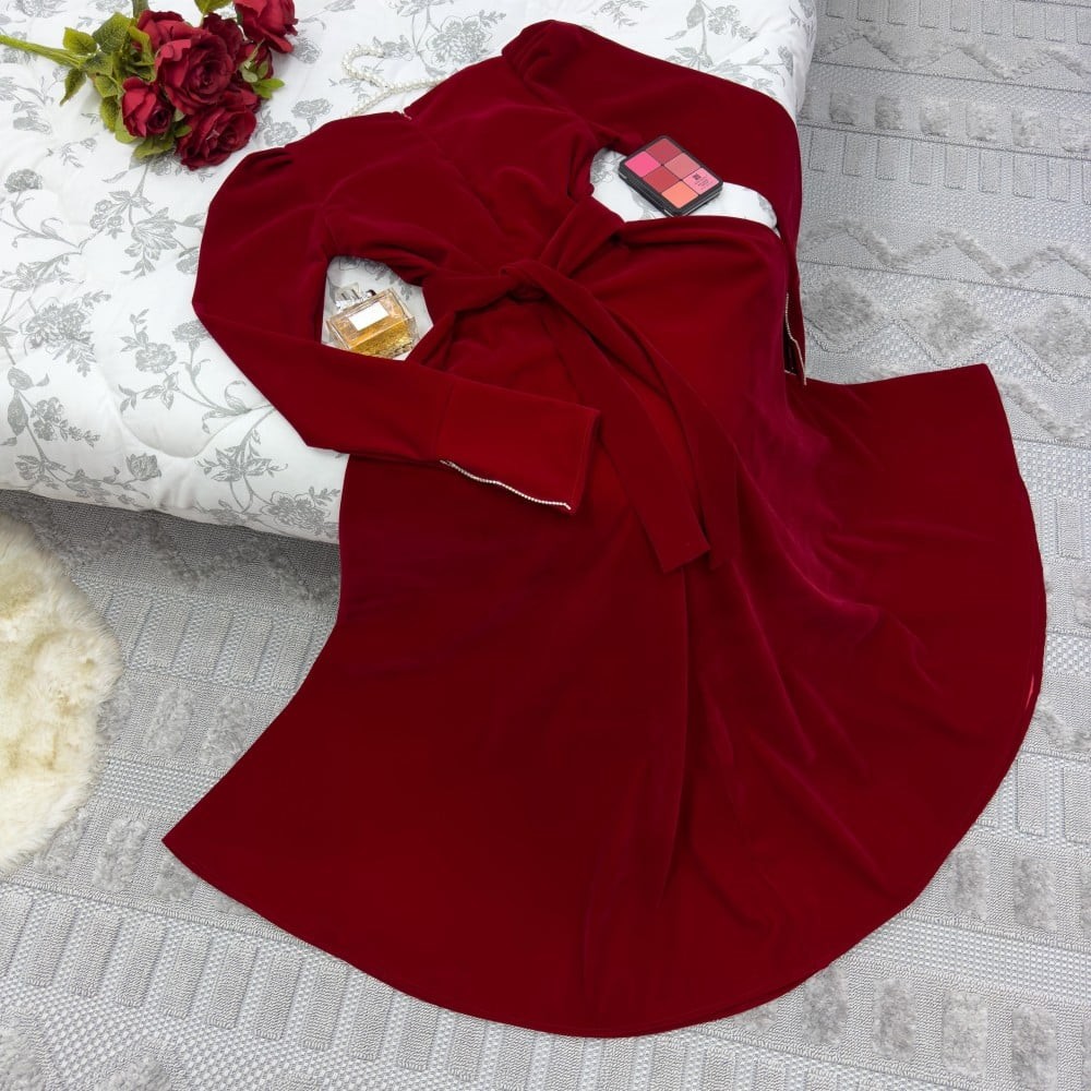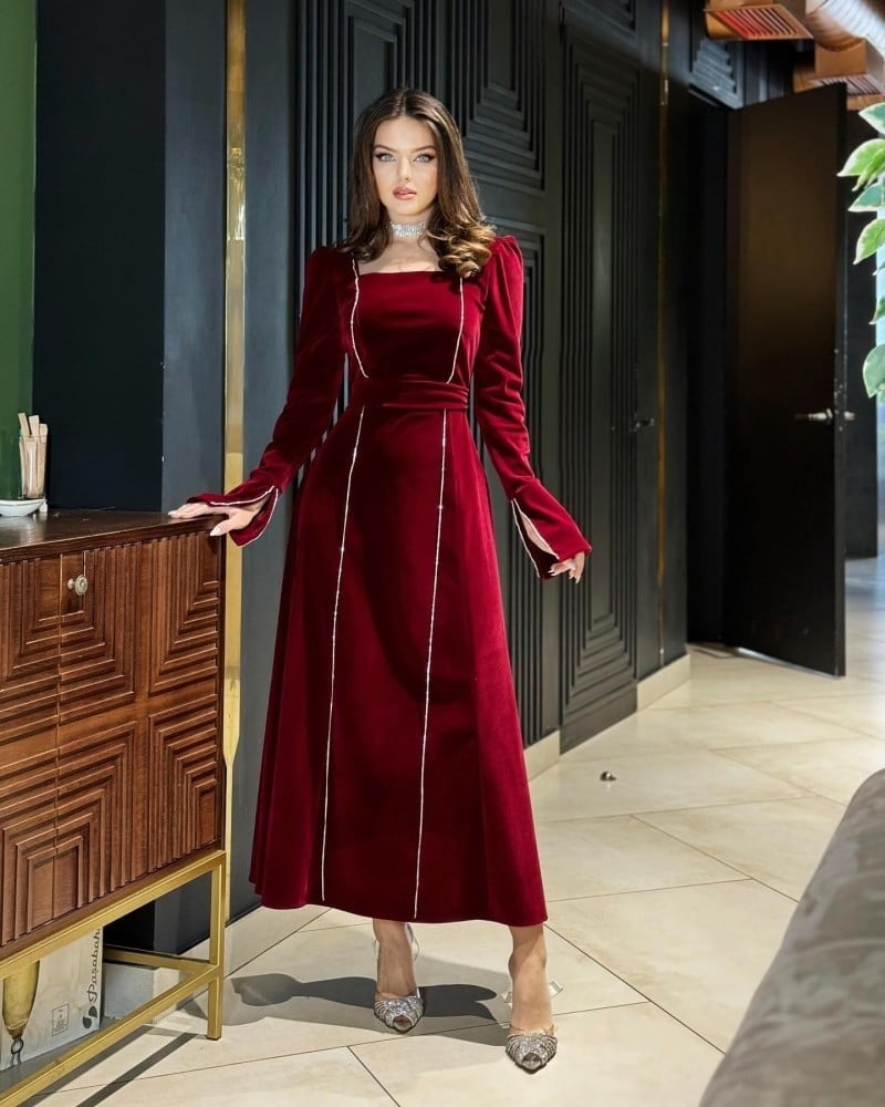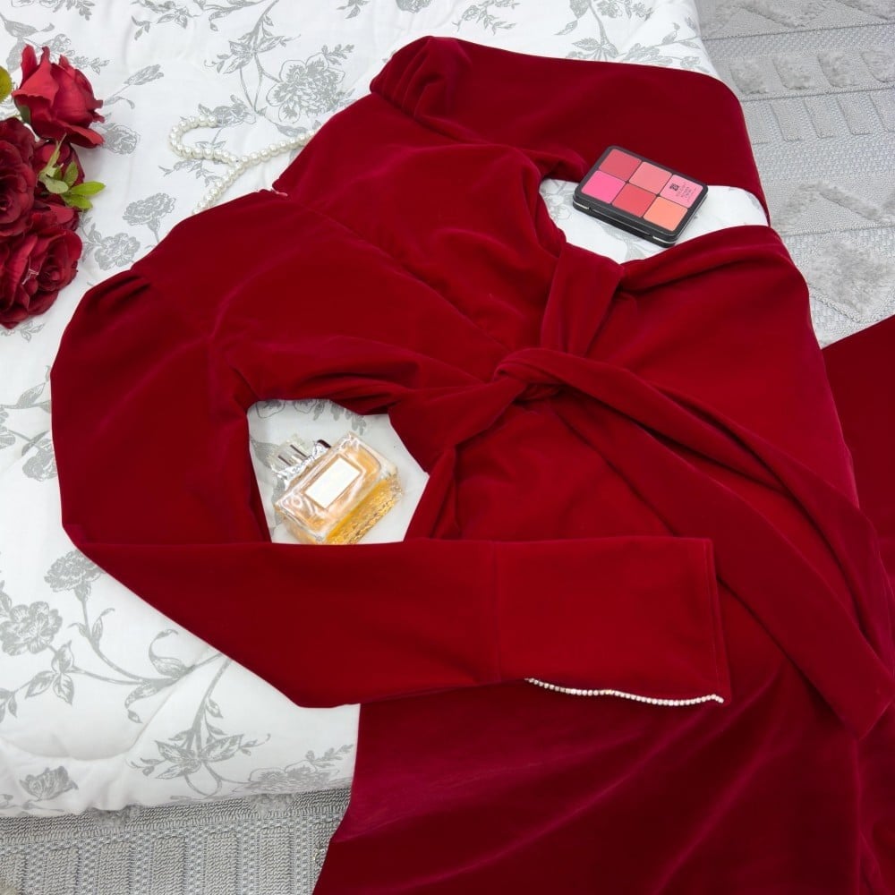 فستان مخمل طويل احمر