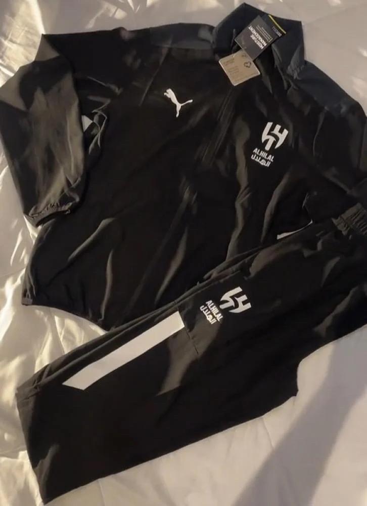 يأتي الطقم بلون اسود، مما يعكس روح الفريق ويجذب الأنظار. تم استخدام أقمشة ناعمة ومريحة، مما يضمن لك ارتداءً يدوم طوال اليوم دون أي شعور بعدم الارتياح. تصميمه الأنيق مع حواف مصممة بذكاء يعكس الشغف بالفريق، مما يجعلك تشعر بالفخر عند ارتدائه في كل مناسبة.